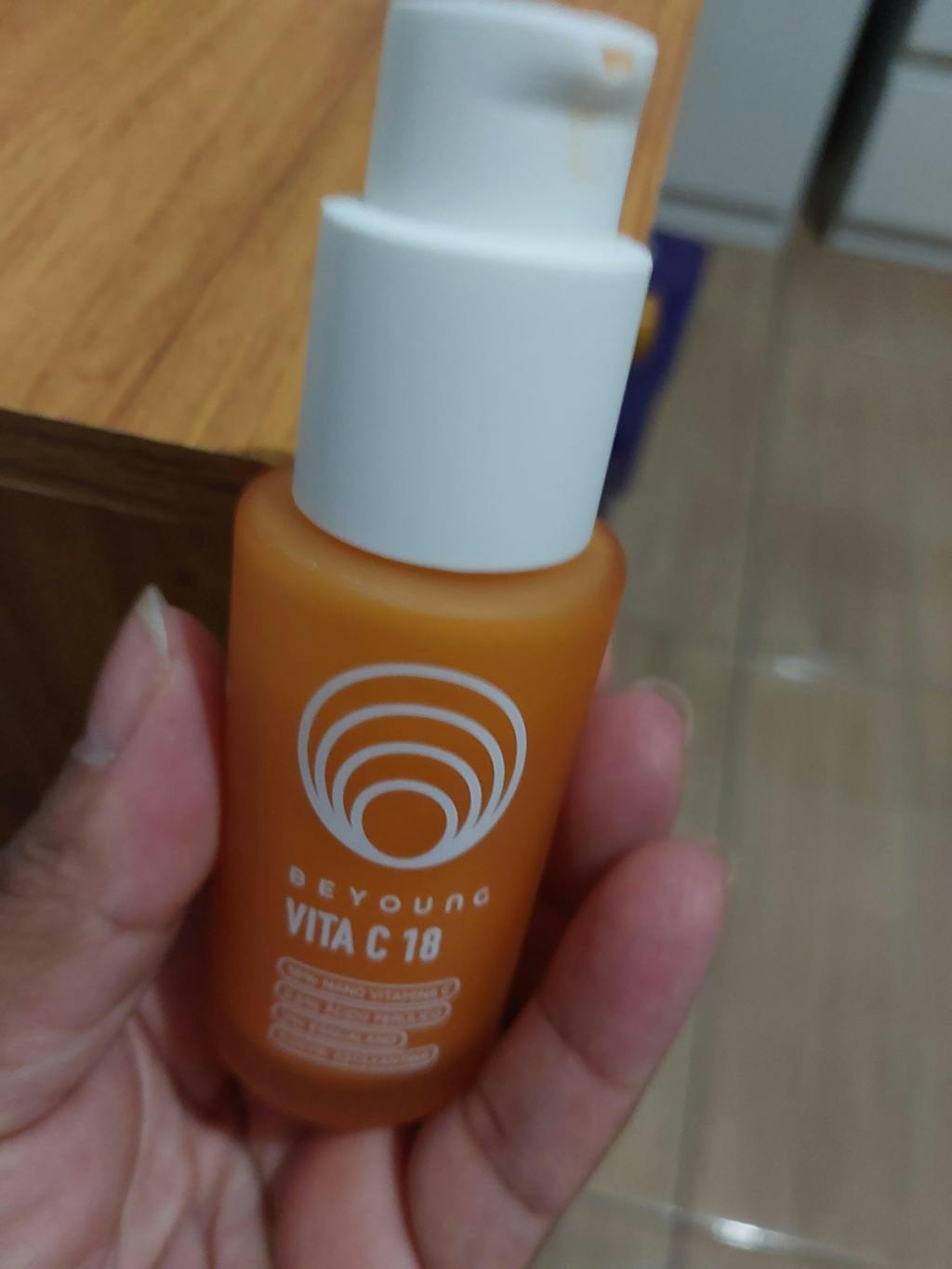 Sérum antioxidante Beyoung Vita C 10 em frasco laranja com válvula pump branca, formulado com nano vitamina C, ácido ferúlico, resveratrol e astaxantina.
