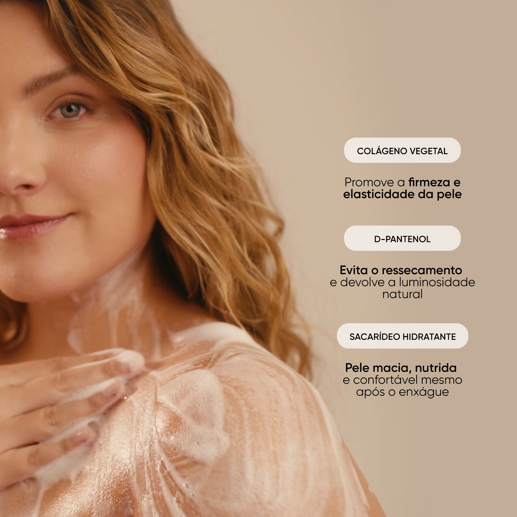 O Sabonete Líquido Corporal limpa delicadamente enquanto hidrata e perfuma, envolvendo a pele com maciez e conforto. Sua fórmula com Colágeno Vegetal, D-Pantenol e Sacarídeo Hidratante ajuda a preservar a barreira cutânea e o toque suave da pele.