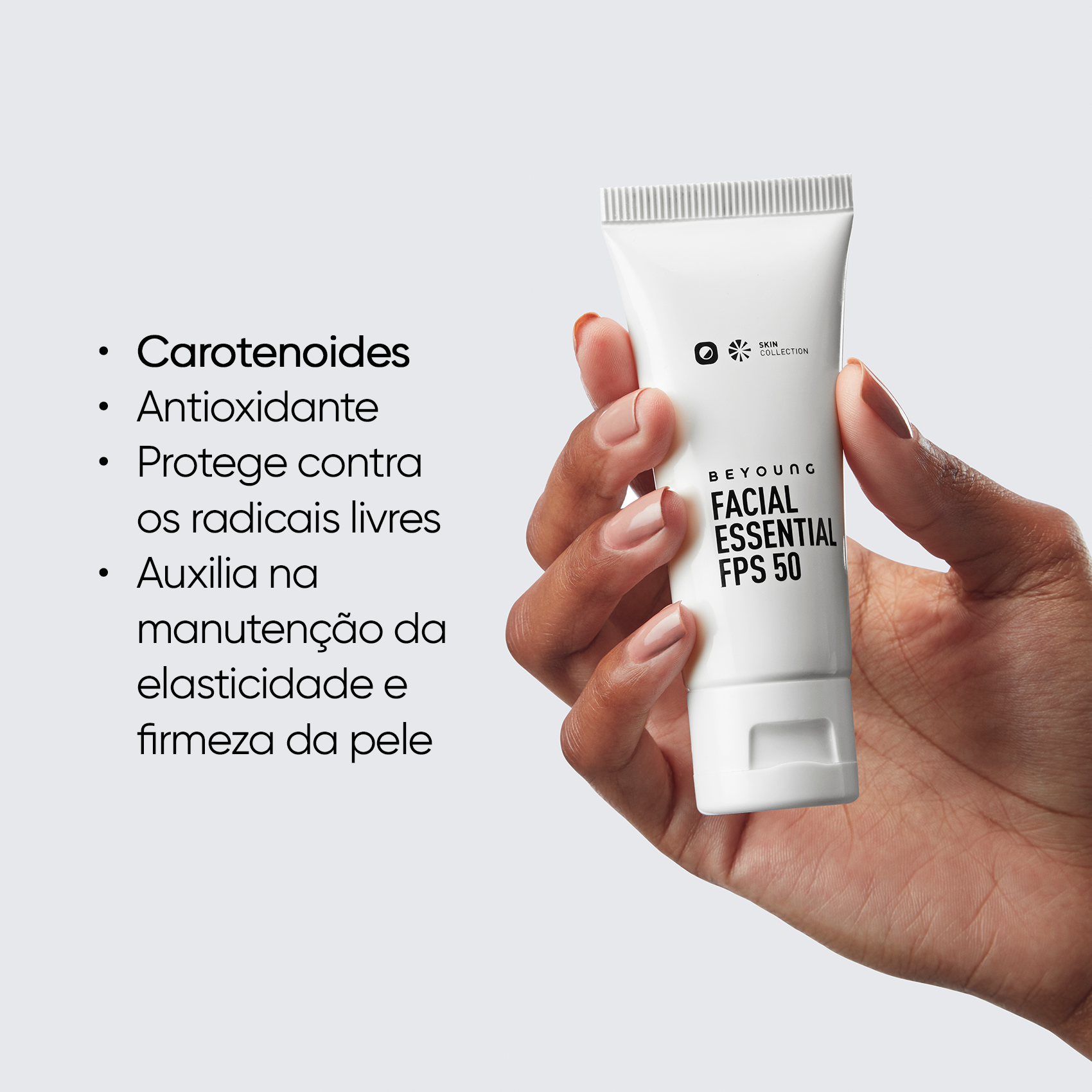 Facial Essential FPS 50 é um protetor solar multifuncional de tripla proteção com ação antioxidante e acabamento transparente.
